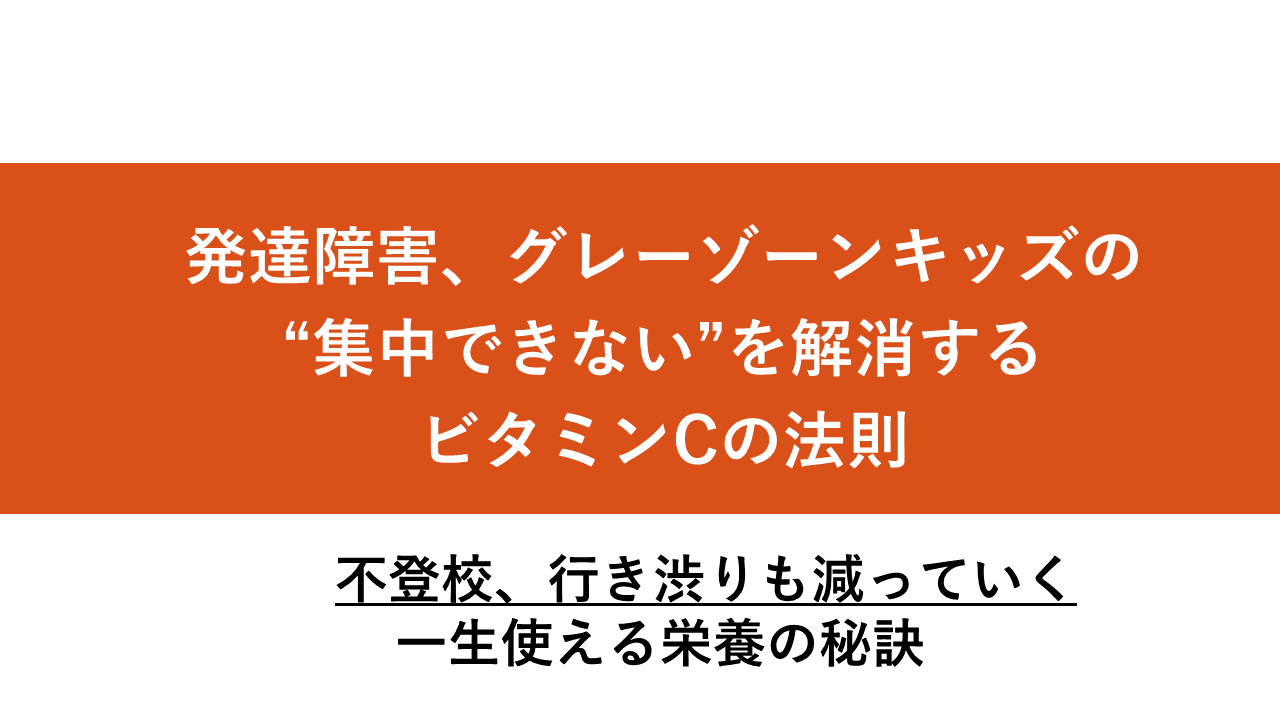 集中力をUP・不登校・行渋り対策になるビタミンCの法則 栄養ノウハウ 2024.02.122024.07.10 こちらでは、お子さんの 集中力を付けるために必要な ビタミンCの話を解説していきます。 解説動画は、 ここから先は、会員限定コンテンツとなります。